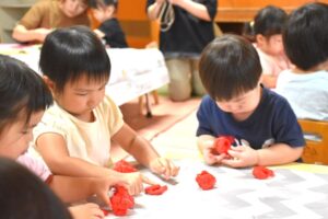 保護中: チョウチョさん/お野菜スタンプ(さくら組)